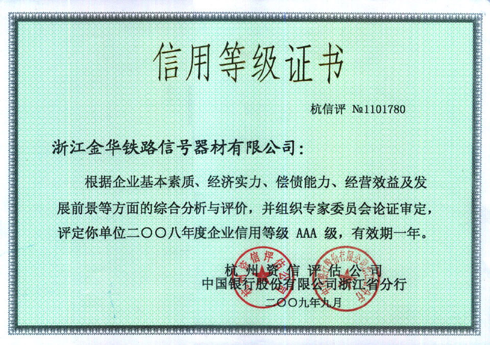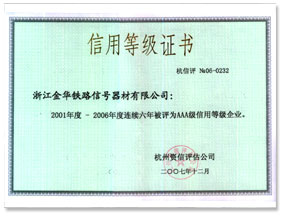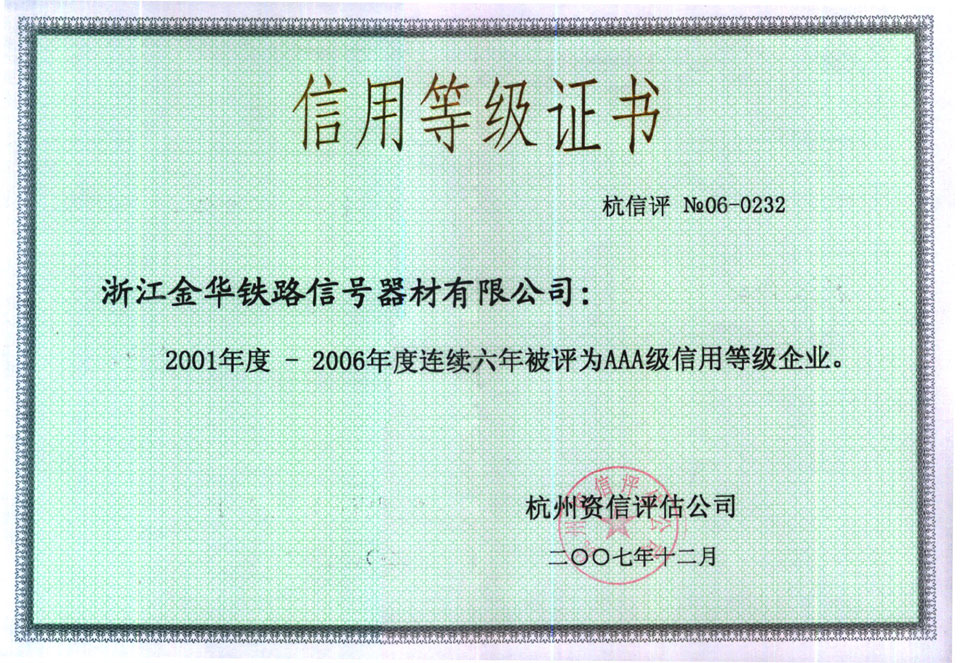 2001-2006年3A級(jí)信用等級(jí)證書(shū)