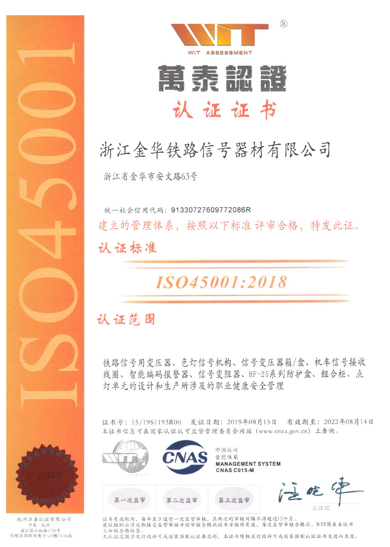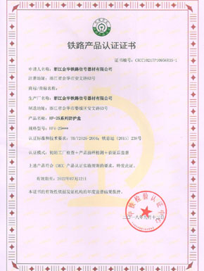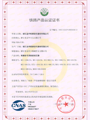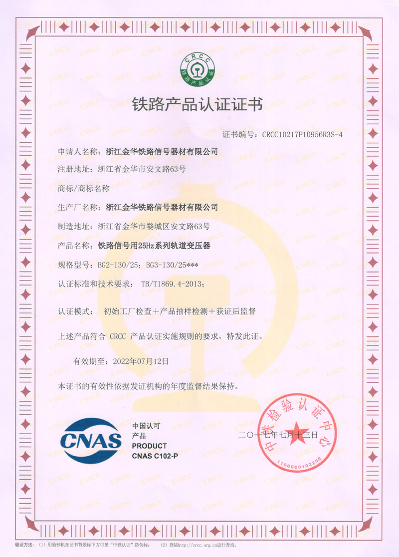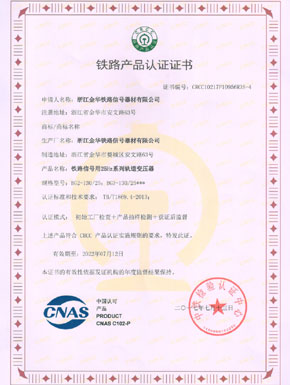 鐵路信號(hào)用25Hz系列軌道變壓器 CRCC認(rèn)證證書(shū)