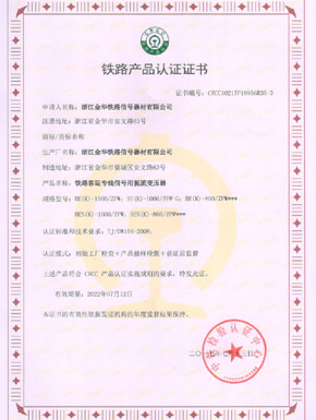 鐵路信號(hào)用扼流變壓器 CRCC認(rèn)證證書(shū)