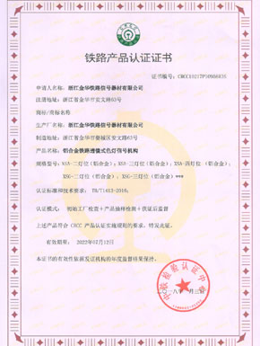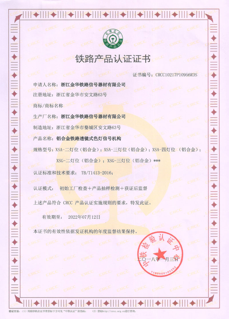 鋁合金鐵路透鏡式色燈信號(hào)機(jī)構(gòu) CRCC認(rèn)證證書(shū)