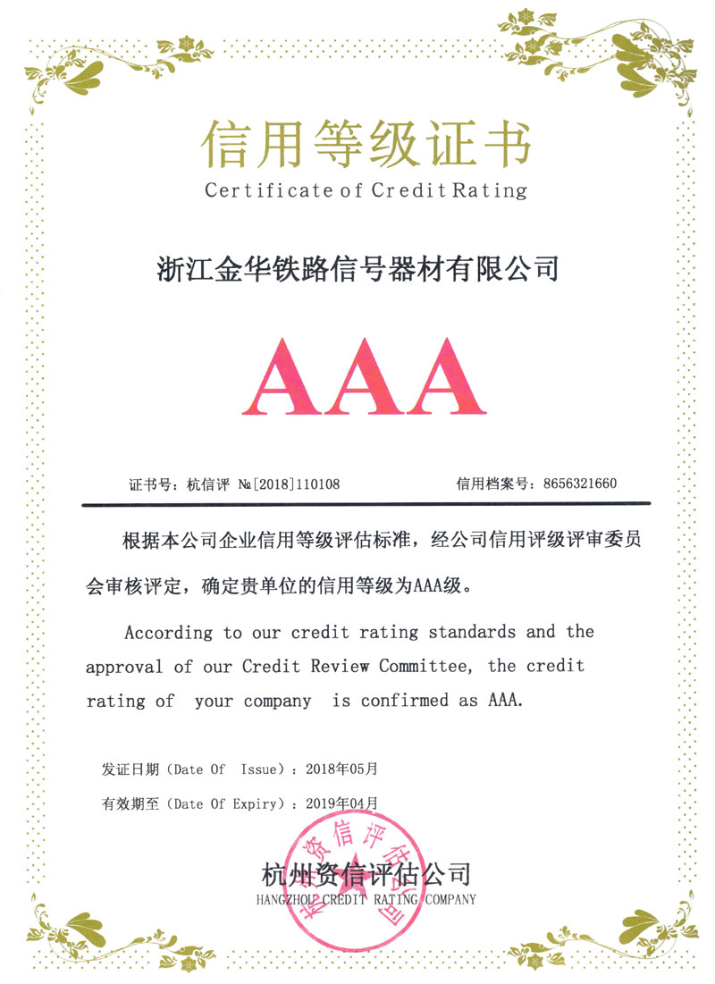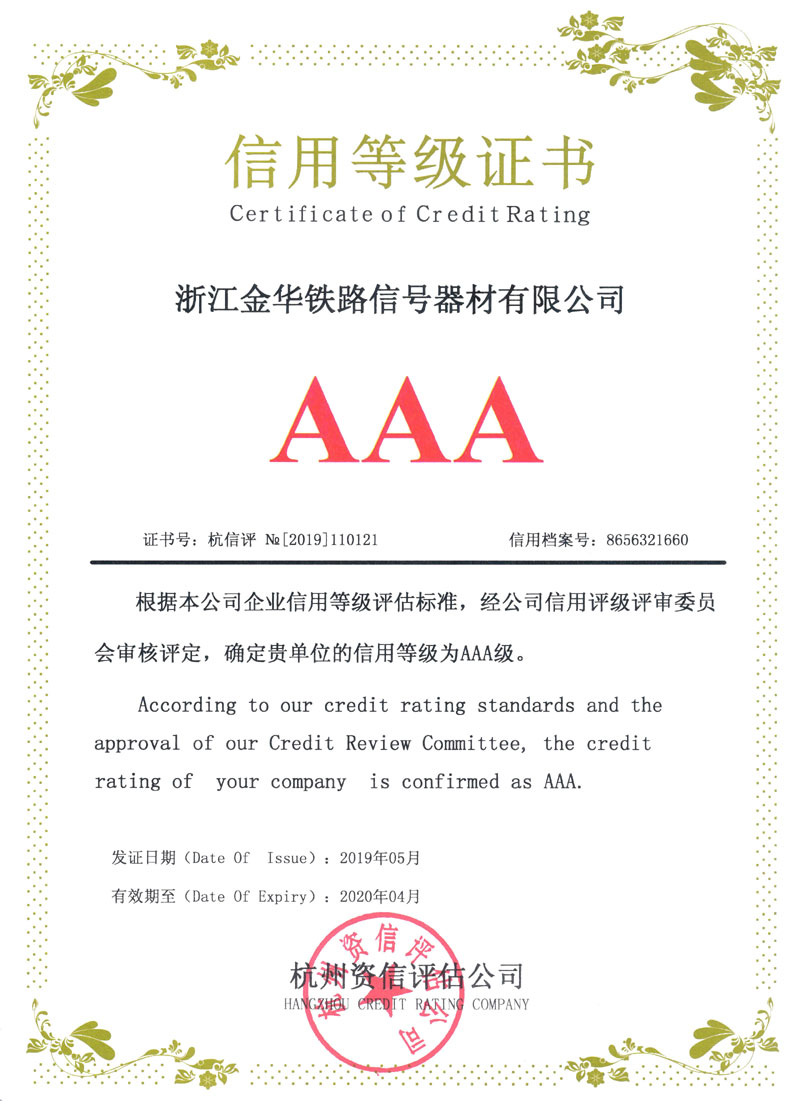 2019年3A級(jí)信用等級(jí)證書(shū)