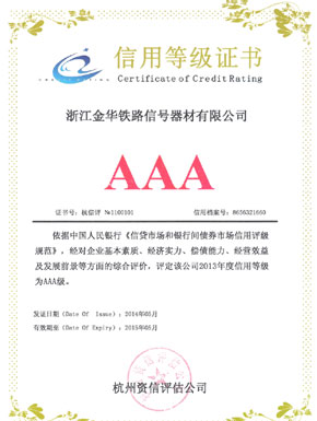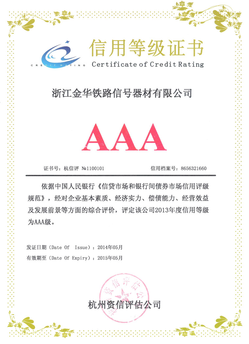 2014年3A級(jí)信用等級(jí)證書(shū)