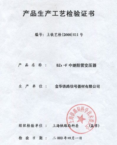 | BZ4-F防雷轨道变压器:容量:1VA;额定电压 :初级0.5 V,次级:≥9.2V ;空载电流0.2A~0.3A;绝缘电阻≥1000MΩ ;绝缘耐压:2KV ;冲击电压转移系数: <1/800。